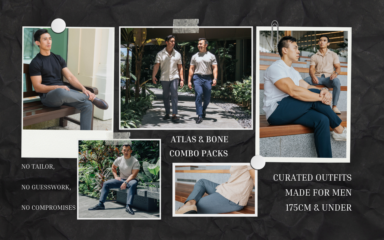 Introducing Atlas & Bone Combo Packs — curated outfits made for men 175cm & under. Each bundle is a shortcut to great style and a better fit — no tailor, no guesswork, no compromises.